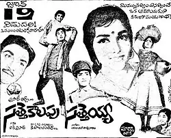 Sattekalapu Satteyya (transl. Truthful Satteyya)[1] is a 1969 Indian Telugu-language film written and directed by K. Balachander, starring Chalam, Sobhan Babu and Rajasree. It was released on 19 June 1969. The film was later remade in Tamil as Patham Pasali (1970) by Balachander himself, in Hindi as Mastana (1970) and in Kannada as Manku Thimma (1980).[2][3]