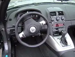 The Sky was marketed as being more luxurious than the Solstice, offering power windows, traction control, cruise control, keyless entry, leather steering wheel wrap, fog lights, StabiliTrak, and a limited-slip differential as standard equipment — all optional on the Solstice.[11][12]
