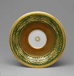 A saucer is a type of small dishware. While in the Middle Ages a saucer was used for serving condiments and sauces, currently the term is used to denote a small plate or shallow bowl that supports a cup – usually one used to serve coffee or tea - or a pot - usually for a plant.[1]