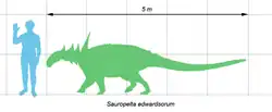 Sauropelta (/ˌsɔːroʊˈpɛltə/ SOR-oh-PEL-tə; meaning 'lizard shield') is a genus of nodosaurid dinosaur that existed in the Early Cretaceous Period of North America. One species (S. edwardsorum) has been named. Anatomically, Sauropelta is one of the most well-understood nodosaurids, with fossilized remains recovered in the U.S. states of Wyoming, Montana, and possibly Utah. It is also the earliest known genus of nodosaurine; most of its remains are found in a section of the Cloverly Formation dated to 108.5 million years ago.