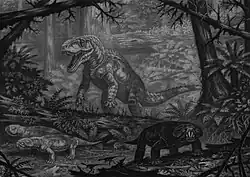 - ^ Martínez, R. N.; Apaldetti, C.; Alcober, O. A.; Colombi, C. E.; Sereno, P. C.; Fernández, E.; Malnis, P. S.; Correa, G. A.; Abelin, D. (2013). "Vertebrate succession in the Ischigualasto Formation". Journal of Vertebrate Paleontology. 32: 10–30. Bibcode:2013JVPal..32S..10M. doi:10.1080/02724634.2013.818546. hdl:11336/7771. S2CID 37918101.