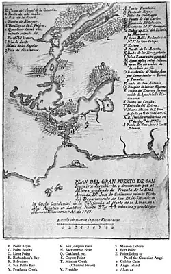 Sausalito was once the site of a Coast Miwok settlement known as Liwanelowa. The branch of the Coast Miwok living in this area were known as the Huimen (or as Nación de Uimen to the Spanish).[14][15] Early explorers of the area described them as friendly and hospitable. According to Juan de Ayala, "To all these advantages must be added the best of all, which is that the heathen Indians of the port are so faithful in their friendship and so docile in their disposition that I was greatly pleased to receive them on board." European settlers took advantage of the Huimen's kindness and hospitality, and completely massacred them within the span of a few generations. As historian Jack Tracy has observed, "Their dwellings on the site of Sausalito were explored and mapped in 1907, nearly a century and a half later, by an archaeological survey. By that time, nothing was left of the culture of those who had first enjoyed the natural treasures of the bay. The life of the Coastal Miwoks had been reduced to archaeological remnants, as though thousands of years had passed since their existence."