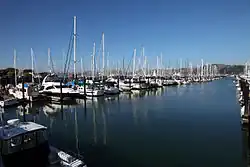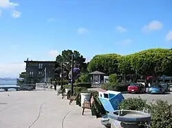 When Sausalito was formally platted, it was anticipated that future development might extend the shoreline with landfill, as had been the practice in neighboring San Francisco. As a result, entire streets, demarcated and given names like Pescadero, Eureka and Teutonia, remain beneath the surface of Richardson Bay.[11] The legal, if not actual, presence of these streets has proved a contentious factor in public policy, because some houseboats float directly above them. According to the San Francisco Chronicle, "State agencies say privately owned houseboats can't be located above the underwater streets because the streets are public trust lands intended for public benefit." The California State Lands Commission is reportedly pursuing a compromise which would move not the houseboats, but the theoretical streets instead.[12]