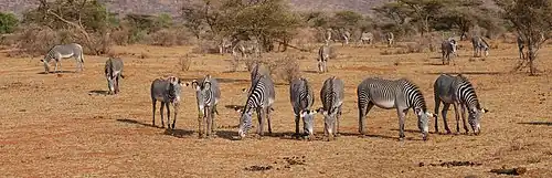 The removal of grass by grazing affects the woody plant component of woodland systems in two major ways. Grasses compete with woody plants for water in the topsoil and removal by grazing reduces this competitive effect, potentially boosting tree growth.[45] In addition to this effect, the removal of fuel reduces both the intensity and the frequency of fires which may control woody plant species.[46] Grazing animals can have a more direct effect on woody plants by the browsing of palatable woody species. There is evidence that unpalatable woody plants have increased under grazing in savannas.[47] Grazing also promotes the spread of weeds in savannas by the removal or reduction of the plants which would normally compete with potential weeds and hinder establishment.[37] In addition to this, cattle and horses are implicated in the spread of the seeds of weed species such as prickly acacia (Acacia nilotica) and stylo (Stylosanthes species).[40] Alterations in savanna species composition brought about by grazing can alter ecosystem function, and are exacerbated by overgrazing and poor land management practices.
