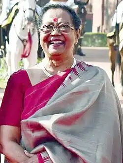 Savita Kovind (Hindi: Savitā Kovinda, pronounced [sɐʋɪt̪ɑː koʋɪ̃d̪ɐ] ;born 15 April 1952) is a former Indian government servant who served as the First Lady of India from 2017 to 2022 as the wife of the 14th President of India, Ram Nath Kovind. She was Chief Section Supervisor in Mahanagar Telephone Nigam Limited before retiring in 2005.