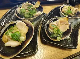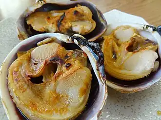 In Japan, the clam is known as uchimurasaki or ō-asari, and is often grilled.