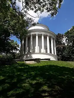 - Water Tower, in the northwest part of the Saxon Garden, is situated by the ornamental lake surrounded by willows. This classicist water tower in the shape of a Roman monopteros was modelled on the Temple of Vesta in Tivoli.[17] It was designed in 1852 by the architect Henryk Marconi.[17]