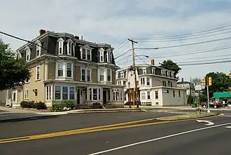 The Saxonville Historic District of Framingham, Massachusetts, encompasses a historic 19th century mill village at the heart of Saxonville. The district is centered on the mill complex at the junction of Water, Central, Elm, and Concord Streets, radiating north on Elm Street and west on Water Street. The extant mill brick and concrete buildings were built after fires destroyed older mill buildings in the 1880s by the Roxbury Carpet Company, whose owner, Michael Simpson, had successfully orchestrated the commercial production of carpets in a single facility. The district includes mill worker housing, some of which dates to the 1820s, as well as private residential development from the period, and a cluster of commercial and civic buildings adjacent to the mill complex.[2]