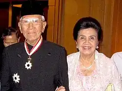 Sayidiman was married to Sri Suharyati Djatioetomo, the daughter of a police general, on 6 July 1958. In accordance to Javanese customs at that time, married men with a mononym could choose a last name, known as nama tua. Sayidiman picked Suryohadiprojo as his nama tua.[4] The marriage resulted in five children, namely Adwin Haryanto, Laksmi Adriyani, Umi Riyanti, Adri Sarosa, and Diana Lestari. However, four years after Sri gave birth to her youngest child, she suffered a chronic disease. Sri Suharyati later died on 1 June 1994.[54] After a period of mourning, Sayidiman married again to Harpini Winastuti Kadarisman on 6 January 1996.[55]
