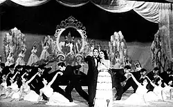 In addition, the novel was adapted by William Luce into a musical of the same name, premiering at the Paper Mill Playhouse in 1987,[13] with music by George Fischoff and lyrics by Hy Gilbert.[12][14] It starred Richard White as Gruver and June Angela as Hana-ogi.[15] Writing for The New York Times, Alvin Klein called it "purely and purposefully sumptuous ... a spectacle with a soul."[13] The musical was revived and revised in 1993 by the 5th Avenue Musical Theatre Company (Seattle) and Theatre Under the Stars (Houston), featuring Sala Iwamatsu as Hana-ogi during its premiere run in Houston.[12]