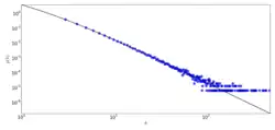 When the concept of "scale-free" was initially introduced in the context of networks,[6] it primarily referred to a specific trait: a power-law distribution for a given variable , expressed as . This property maintains its form when subjected to a continuous scale transformation , evoking parallels with the renormalization group techniques in statistical field theory.[9][10]