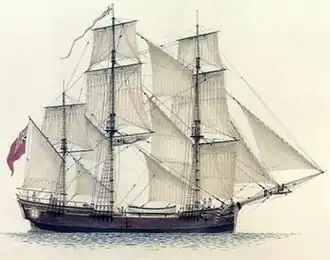 In 1787 south London shipbroker William Richards chartered Scarborough for the First Fleet voyage at a rate of 12 shillings per ton (bm) per month. He selected her after first consulting with Royal Marine officers Watkin Tench and David Collins.[10] Both marine officers would sail with the Fleet to Australia, Tench as a captain of marines and Collins as judge-advocate for the new colony. She was the second-largest transport selected for the Fleet after Alexander.[5]