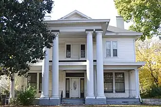 Scarborough House is a historic home located in the Hayti neighborhood of Durham, Durham County, North Carolina. It was built in 1916, and consists of a cubical two-story, two-room-deep hip roofed main block, with a two-story hip-roofed rear ell. It features a Neoclassical style, two-story flat-roofed portico on paired Doric order columns. It was built by prosperous African-American funeral home owner J. C. Scarborourgh and his wife Daisy and many of the materials used for the house were salvaged by Scarborough from the 1880s Queen Anne Style Frank L. Fuller House which formerly stood in the 300 block of E. Main St.[2]