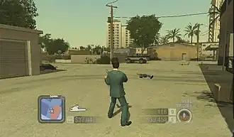 The basic gameplay and game mechanics fall into the subgenre of Grand Theft Auto clones.[7] As such, the player can commandeer vehicles (cars and boats), move around the map on foot, interact with civilians and NPCs both hostile and non-hostile, engage in primary and sub-missions, and wield a variety of weapons: pistols, submachine guns, shotguns, assault rifles, a sniper rifle, a rocket launcher, a chainsaw, and various melee weapons, such as pipes and machetes.[8] In a departure from most Grand Theft Auto-style games, Tony cannot kill innocent people. If the player tries to shoot or attack a non-aggressive target, Tony will refuse to act; if the player tries to hit an innocent person with a car, they will only be injured. This keeps in line with the character's refusal to kill innocent men, women and children.[9] As the game progresses, the player acquires access to some of Tony's employees as he rebuilds his empire: a driver, a boat pilot who can smuggle larger hauls of cocaine, an arms dealer who can supply weapons, an enforcer to protect Tony's businesses and attack those of his rivals, and a hitman who can eliminate other gangsters and dealers.[10] When these employees have been unlocked, the player can switch control from Tony to any one of them (except the arms dealer), and when playing as the enforcer or the hitman, the player can kill innocent people.[9]