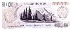 Scenes of Canada is the fourth series of banknotes of the Canadian dollar issued by the Bank of Canada. It was first circulated in 1970 to succeed the 1954 Canadian Landscape series and was followed by the 1986 Birds of Canada banknote series. This was the last series to feature a $1 bill, which was replaced by a $1 coin known as the loonie in 1987, although both the $1 bill and the loonie were produced concurrently for 21 months, from June 1987 to April 1989.[1]