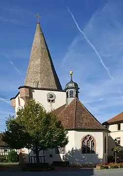 The town centre features the medieval Lukaskapelle, a small fortified church (1449).[7] The former Schloss nearby is now the seat of the local administration. Its original moat and curtain wall have been removed. The Sackhaus, which was used to store local taxes paid in goods, is today the largest half-timbered building in town. Its oldest part dates to 1473.[4][8]