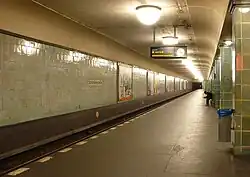 Schönleinstraße is a Berlin U-Bahn station located on the U8. Opened in 1928 and designed by Grenander it was shortly closed in 1945 and renamed in 1951 to Kottbusser Damm. In 1992 the station was named Schönleinstrasse again.[1]