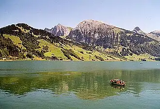 ![]() The Schiberg (centre right) from the Wägitalersee | |