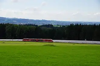 The Schlechtenberg Solarpark consists of 33,000 solar panels by Hanwha SolarOne,[1] has a length of 1.2 kilometers (0.75 mi) and a width of 100 meters (330 ft). Inaugurated in September 2013, it was the largest photovoltaic power station in the Allgäu, Swabia, Germany.[2]