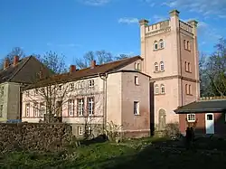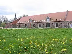 The manor house is the oldest building on the estate, situated on the eastern edge. The first part of the building was built at the start of the 18th century, whereas the southern part with the tower was added in 1890.[2] A cobblestone church from 1888 also belongs to the estate,[3] and is part of the Brüssow parish.[4]
