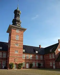The Castle in front of Husum (German: Schloss vor Husum), so named because it was outside the city boundary when it was built, is situated in Husum, in the district of North Frisia in the state of Schleswig-Holstein. It was initially a secondary residence of the ducal house of Schleswig-Holstein-Gottorf and served as an occasional residence for the Danish royal family during the 18th and 19th centuries. It also accommodated administrative offices, which gradually expanded and after 1864 occupied most of the building. The offices remained until the 20th century, and the castle came to be known as the "royal palace".
