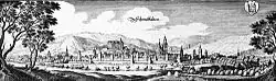 First mentioned in an 874 deed, Smalcalta in the Frankish duchy of Thuringia received town privileges about 1180. When Landgrave Henry Raspe of Thuringia died without issue in 1247, it passed to the House of Henneberg-Schleusingen, while the major part of the landgraviate fell to the House of Wettin in Meissen. To secure their acquisition the Counts of Henneberg allied with the Landgraviate of Hesse, including the conclusion of an inheritance treaty. In 1360, together with Landgrave Henry II of Hesse they paid off Frederick V, Burgrave of Nuremberg, son of Elisabeth of Henneberg.
