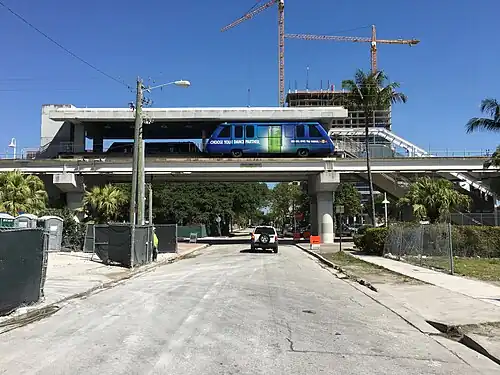 This station is located near the intersection of Northeast 15th Avenue and Miami Place, about one block north of the Miami-Dade County Public Schools Administration Building. It opened to service May 26, 1994. School Board has consistently been one of the lowest used stations in the system, with well under 1,000 riders a day.[1] As of 2017, two large apartment buildings totaling over 1,200 units were under construction nearby, such as Canvas and Square Station,[2] Art Plaza, and Miami Plaza, with others planned. Prior to this, the station was surrounded by mostly empty lots.