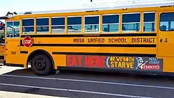 School bus advertising is a form of advertising in the United States in which advertising space is sold on the sides of school buses. School districts typically partner with a marketing firm to sell the space and market the program to businesses, Depending on the size and market of each individual school district, this form of advertising can be very lucrative. Scottsdale Union School District in Arizona expected to make $900,000 in three years, while a smaller school district of 4,100 students in Michigan anticipated $70,000 a year.[1]
