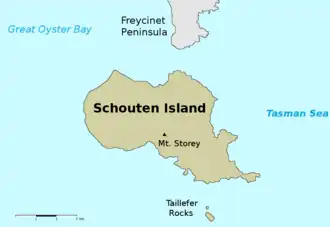 - ^ "Placenames Tasmania – Schouten Island". Placenames Tasmania. Select “Search”, enter "43790C", click “Search”, select row, map is displayed, click “Details”. Retrieved 4 August 2020.