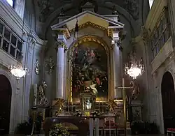 In 1723, Lichtental became an independent parish.[2] The first pastor was Carl de Giorgio. The building was completed in 1730 and consecrated to the Fourteen Holy Helpers.[1] An organ was installed in 1738. Facing a rapidly growing population, the church was expanded to its present size, from 1769 to 1773. The foundation was laid by Maria Theresia.[2] It shows elements of the transition from Baroque to Neoclassical architecture.[3]