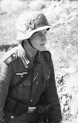 During the Second World War, it also became a rank in the Waffen-SS, SS-Schütze.[1] Other branches of the SS referred to the rank as Mann.[3]