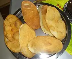 Schuxen (also Schuchsen or Schuxn) is an elongate fried dough pastry made from rye flour and yeast that is popular in Upper Bavaria. It is similar to Krapfen with the difference that it is not sweet.