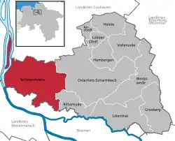 Schwanewede is a municipality in the district of Osterholz, in Lower Saxony, Germany. It is situated approximately 14 km west of Osterholz-Scharmbeck, and 22 km northwest of Bremen.