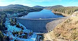 The Schwarzenbach Dam (German: Schwarzenbachtalsperre) is a gravity dam near Forbach in the Northern Black Forest of Germany. It is the most important structure of the Rudolf-Fettweis-Werk's pumped storage power station. The operator of the dam, which was completed in 1926 in a side valley of the Murg valley, is EnBW Kraftwerke.