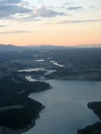 Schwatka Lake is a reservoir created by the damming of the Yukon River in Whitehorse, Yukon, completed in 1958. The dam provides electrical power generation and is operated by the Yukon Energy Corporation. The White Horse Rapids, which gave the city its name, are now under the lake. The lake was named after Frederick Schwatka, a US Army Lieutenant who was first to explore the total length of the Yukon River. The lake's surface area is approximately 15 hectares (37 acres) and a depth of about 6–8 metres (20–26 ft).[1][2]