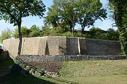 The (inner) city fortification of the new city was built and first documented in 1258, it is still largely preserved on Marienbach today. A document from 1282 signed by Rudolf I of Habsburg states that Schweinfurt was a free city within the Holy Roman Empire.[8] By pledge 1309 Schweinfurt came to the House of Henneberg, who maintained from 1310 to 1427 a Reichsburg (castle of the empire) in the old Schweinfurt city district Zürch.