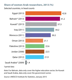 - ^ a b c d e f g h i j Eisa Aleisa, Esra; Djeflat, Abdelkader; Zou'bi, Moneef (2021). The Arab States. In: UNESCO Science Report: the Race Against Time for Smarter Development. UNESCO Publishing. pp. 422–465.