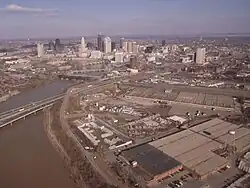 Branching out of the park is an abandoned overpass, spanning over the nearby Interstates 70 and 71. In 2020, a 400-foot mural was painted on its roadbed, reading "We are stronger together", in reference to the ongoing COVID-19 pandemic.[9]
