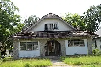 The Scipio A. Jones House is a historic house at 1872 South Cross Street in Little Rock, Arkansas. It is a 1+1⁄2-story masonry structure, finished in an elaborate interpretation of the Craftsman style with a variety of materials. It has a clipped-gable roof covered with red tile, with a skirt of roofing extending across the front above the first floor. The entrance is recessed under a stone-faced arch, which is flanked by stuccoed bays with bands of three sash windows. The gable above also has a three-sash window group. The house was built about 1928 for Scipio Jones, one of Arkansas' most prominent African-American lawyers and politicians of the period.[2]