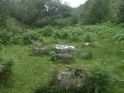 Scotia's Grave or Scota's Grave[1] is a rock feature south of Tralee in County Kerry, Ireland. It is beside a stream called the Finglas (Fionnghlas - 'clear stream'), in a wooded glen called Gleann Scoithín, anglicized 'Glenscoheen' or 'Glanaskagheen'.[2] According to Geoffrey Keating's Foras Feasa ar Éirinn (17th century), it is the burial place of Scota, an ancient queen of the Milesians (Gaels) who died there in battle with the Tuatha Dé Danann.[3] John O'Mahony translated Gleann Scoithín as "vale of the little flower" and said it is the Irish equivalent of the female name Flora.[3] According to the National Monuments Service, "Following a site inspection in 1999 it was concluded that the evidence was not sufficient to warrant accepting this as an archaeological monument".[4]
