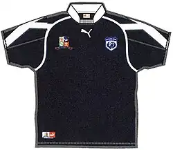 Since their first match Scotland have always played in royal blue, with a royal blue shirt, shorts and socks. In their two World Cup qualifying matches in 2007, the Scottish flag, featuring the white cross on a blue background, was on each shoulder and also on the shirt was a white collar.[104] On the left of the shirt is the Scotland badge, and on the right is the Great Britain badge which is split into four and then has the England, Scotland, Wales and Ireland rugby league badges in a shield.[105] This is to signify Scotland's part in the Great Britain setup.