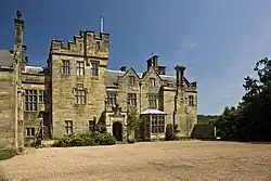 At the top of the garden stands a house which was built to replace the Old Castle between 1835 and 1843. This is known as Scotney New Castle, or simply Scotney Castle, and was designed by Anthony Salvin. It is an early and unusually restrained example of Tudor Revival architectural style in 19th-century Britain. Following the death of the resident, Elizabeth Hussey,[1] in 2006, this house was opened to the public for the first time on 6 June 2007.