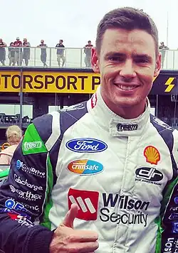 After one season at Lucas Dumbrell Motorsport, Pye signed a two-year deal with Dick Johnson Racing, driving a Ford FG Falcon with Wilson Security sponsorship for 2014.[10] However, in September 2014, Team Penske bought a stake in the team and eventually elected to run only a single entry in 2015 for two-time champion Marcos Ambrose, in his return from NASCAR.[11] Pye signed on as Enduro Cup team-mate to Ambrose at the renamed DJR Team Penske, but after mixed performances at the Adelaide 500 and the non-championship Supercars Challenge, Ambrose stepped down from the seat, leaving Pye back in a full-time drive for the remainder of the season.