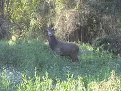 Most of the riparian zone along the Murrumbidgee is privately owned land.[30] Stock access to water along the Murrumbidgee has had a particularly severe impact on the vegetation and habitat through trampling, grazing[31] and erosion. While fencing can be erected in an attempt to control stock access, native herbivores such as kangaroos and wallabies cause as much damage as stock and are relatively unaffected by fencing.[26]