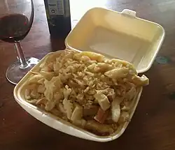 When frying food (e.g., fish), scraps are the by-product pieces of deep-fried batter left over in the fryer. They are served as an accompaniment to chips.[1] In the UK, they are traditionally served free of charge with chips by some fish and chip shops,[2] although some places charge for the scraps.[2][3]