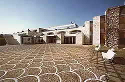 The design of the ‘Reiss Romoli’ school was carried out by the Antonelli-Greco Studio in Rome, who built a campus inspired to Anglo-Saxon colleges. The structure is characterized by stone walls and made with special anti-seismic criteria.[8] It covers 170 thousand square meters with five tennis courts, one soccer field, a multipurpose facility, a fitness trail, swimming pool and two gyms.[9]