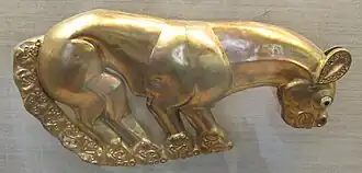 The marital alliance, as well as the proximity of the Scythians to Assyrian-influenced states, placed the Scythians under the strong influence of Assyrian culture.[102][118] Scythian culture and art absorbed various West Asian elements;[78] Scythian dress and armour from this time, including in Cirscaucasia, reflect heavy influences from West Asia and the Iranian Plateau on Scythian culture during this period.[128]