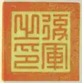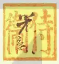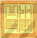 In the year 1709 Nguyễn lord Nguyễn Phúc Chu ordered the creation of a golden seal, this seal was 108 by 108 by 63 millimeters in dimensions.[15][16] It bears the inscription Đại Việt quốc Nguyễn Chúa vĩnh trấn chi bảo (大越國阮𪐴永鎮之寶, "Seal of the eternal government of the Nguyễn Lords of the kingdom of Great(er) Viêt"; Modern Vietnamese: Bảo của chúa Nguyễn nước Đại Việt trấn giữ lâu dài).[17][15] This seal classifies Lord Nguyễn Phúc Chu as a mandarin of the 2nd military rank.[15] While the Nguyễn lords were nominally sovereign for over a century at this point, they hadn't commissioned the creation of a national seal before 1709.[15]