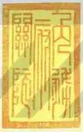Strict regulations existed for bronze government office seals that forbade their usage outside of official documents, unlike corporate and private seals which could be used without limitation.[13] If someone used a government seal in a private setting it was considered to be a criminal offense.[13] An exception was made for the day of the traditional opening ceremony after new year (Tết Nguyên Đán) where seals were stamped on an empty peace of paper, however, it was stipulated that after stamping these papers with a seal that they had to be burned.[13] Another regulation stipulated that if the court would confiscate a seal or if a lost seal was found that it was to immediately be destroyed.