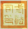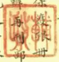 Seals in the Nguyễn dynasty were overseen by a pair of agencies referred to as the Office of Ministry Seals Management - Officers on Duty (印司 - 直處, Ấn ty - Trực xứ), this is a term that refers to two agencies which were established within each of the Six Ministries, these agencies were tasked with keeping track of the seals, files, and chapters of their ministry.[9] On duty of the Office of Ministry Seals Management were the correspondents of each individual ministry that received and distributed documents and records of a government agency.[9] These two agencies usually had a few dozen officers who would import documents from their ministry.[9] Usually the name of the ministry is directly attached to the seal agency's name, for example "Office of Civil Affairs Ministry Seals Management - Civil Affairs Ministry Officers on Duty" (吏印司吏直處, Lại Ấn ty Lại Trực xứ).[9]